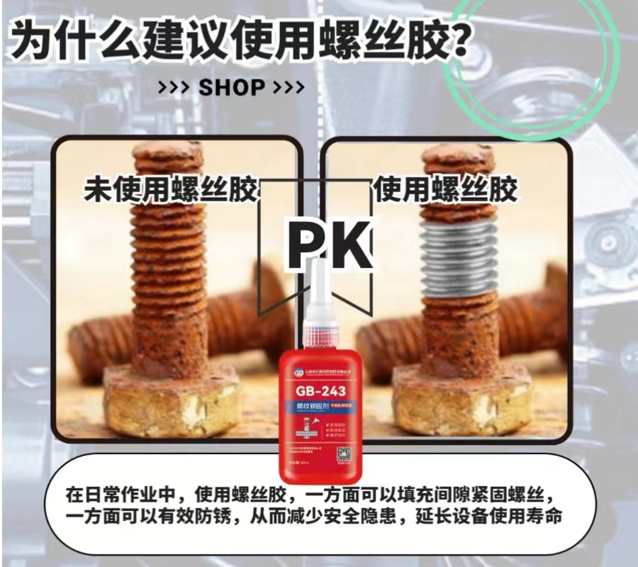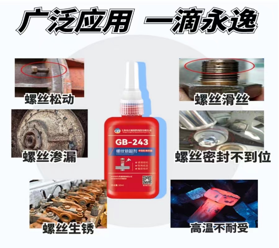 螺丝松动,滑丝,渗漏,生锈等一系列问题会导致设备在运行中骤停,生产出的产品存在差异,严重时还会有危险,功百螺纹锁固剂(螺丝胶))可以轻松帮你解决各种螺丝问题,一滴锁固,锁住安全隐患