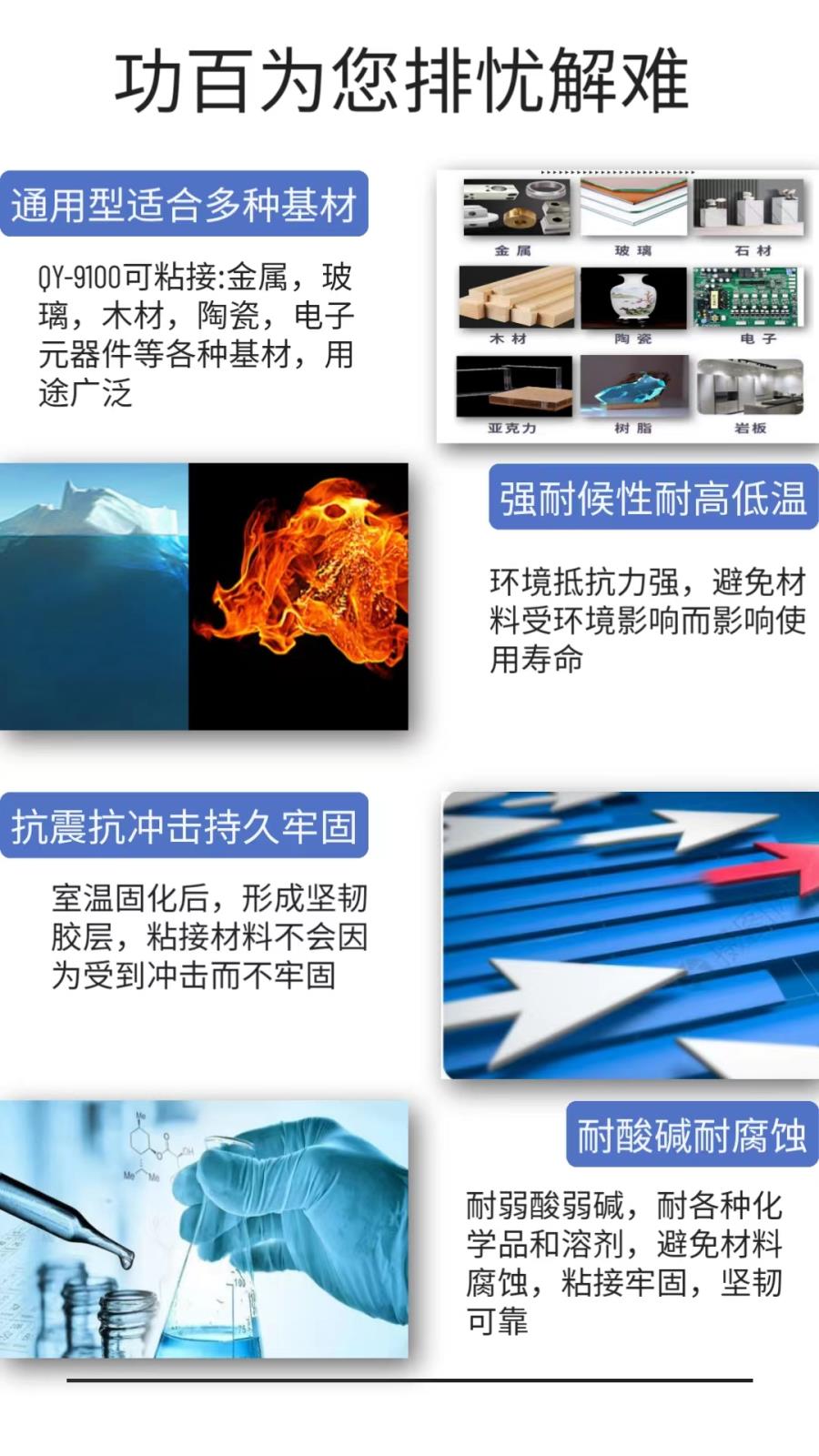 上海功百新材料科技有限公司 是上海地区一家专业从事工业胶水,清洗剂,防锈剂等产品,集研究、开发、生产与销售于一体的企业。主要产品:瞬间胶、厌氧胶(螺纹锁固剂 圆柱形固持胶 管螺纹密封剂 )、紫外线UV无影胶、环氧AB胶、表面处理剂、水剂清洗剂等