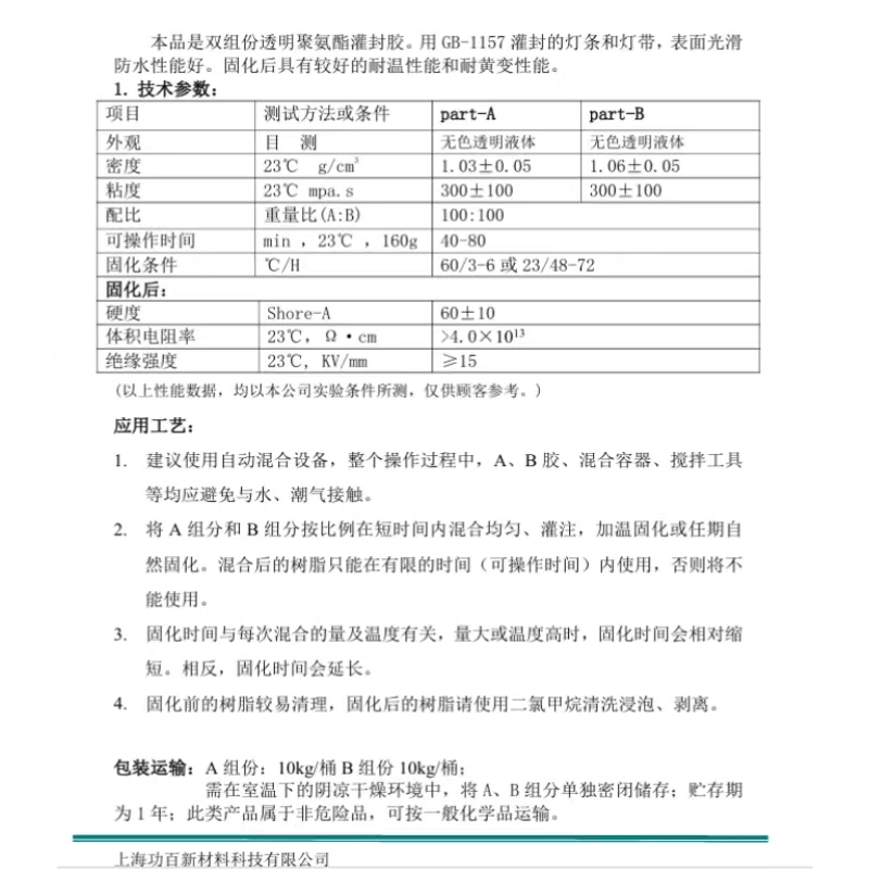 7聚氨酯灌封胶 耐温性耐黄性佳 灯条 灯带灌封ab组份密封胶