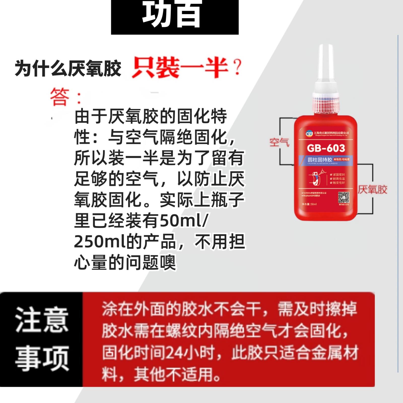 在两个紧密配合的金属表面间,与空气隔绝时固化,并且防止由于受到冲击和震动而导致的松动和泄露。