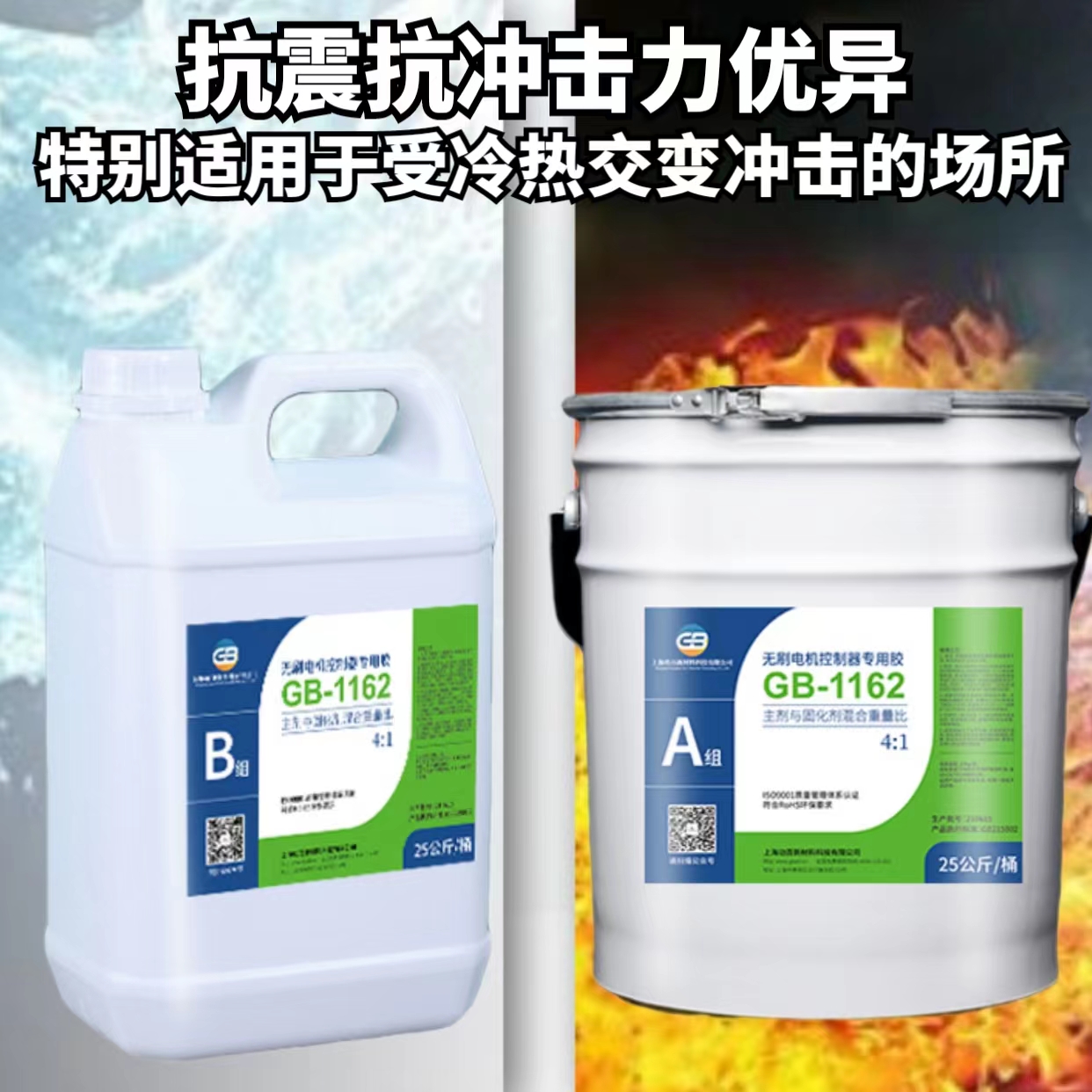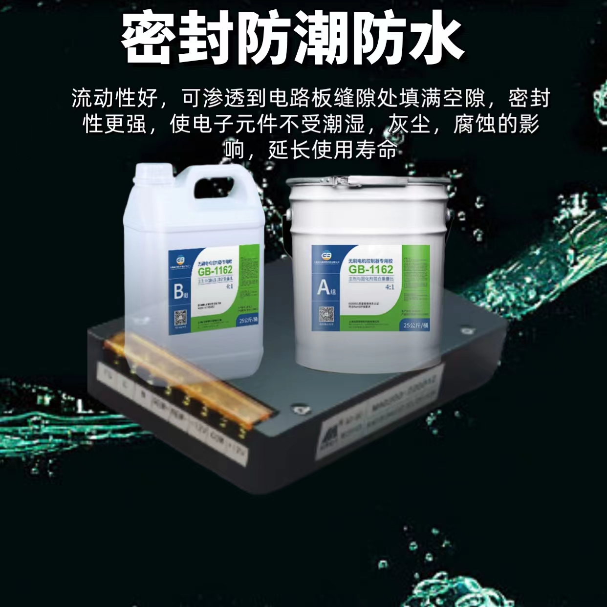 GB-1162是一种聚氨酯灌封料。室温和加热固化均可;固化时放热量少、收缩率低;固化后耐湿热性能好、柔韧性优异,特别适用于受冷热交变冲击的场所, 符合Rohs、Reach等环保指标要求。