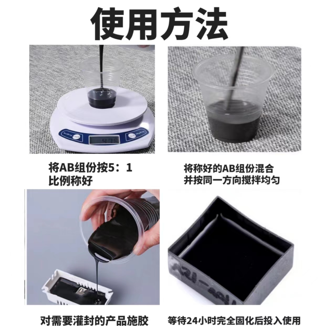 4、固化:将灌封好的部件置于固定位置,自然固化即可。当加温固化时,将部件置于烘箱中,按指定条件加温固化,然后停止加热,随箱冷却至常温即可。固化过程中不要搬动或冲击灌封件。