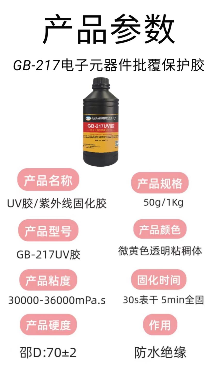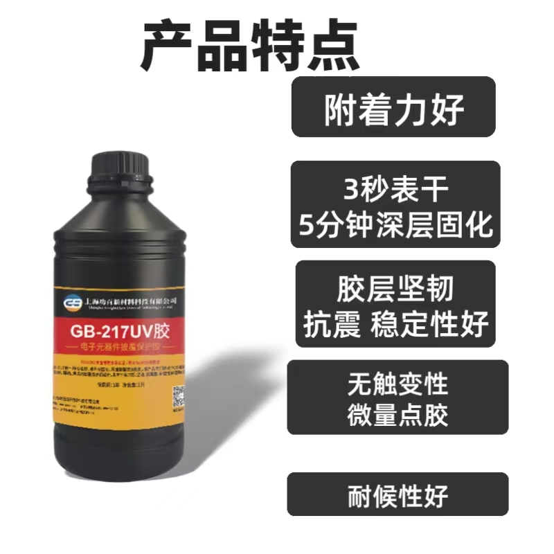 GB-217是一种单组份、紫外光固化、丙烯酸酯类胶粘剂。该产品专门针对PCB电路板原件、排线、焊点的披覆保护而设计。具有附着力好、坚韧、抗震强、耐候性好等特点。